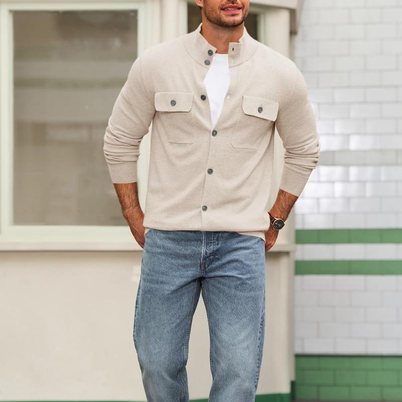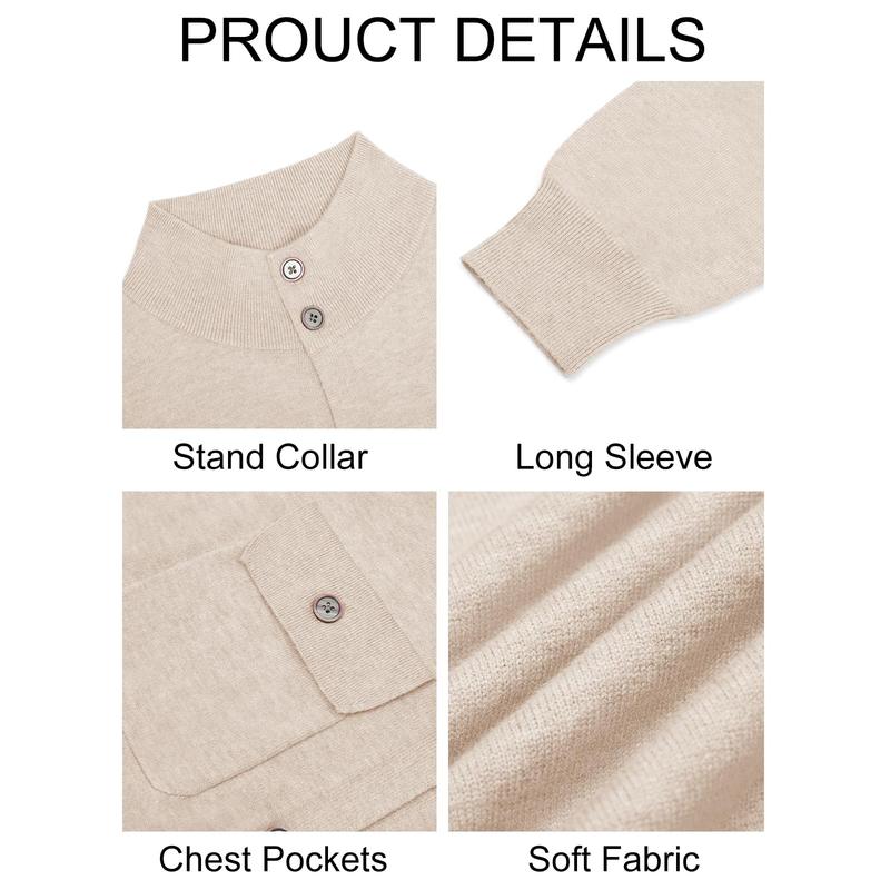 【Features】 These mens warm cardigan sweaters are design with button closure, mock neck, long sleeve, two chest pockets, ribbed cuffs and hem, slim fit style. Stay cozy and fashionable throughout the fall and winter seasons