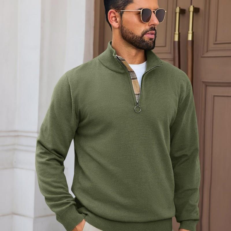 Stylish Design: Men's lightweight casual pullover sweater features with long sleeve, slim fit, half zip closure, mock neck, ribbed edge. The plaid patchwork at collar makes this basic pullover sweater look great and unique