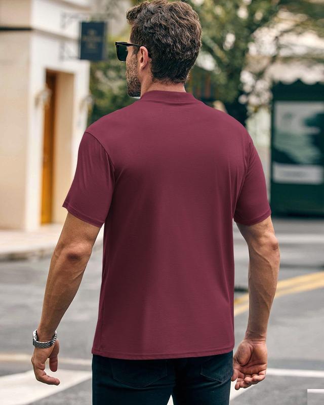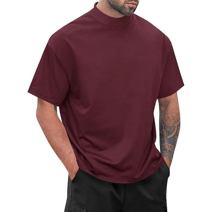 Features: Mens t shirt, mock neck, ribbed,solid color, basic design, short sleeve, casual and fashion.