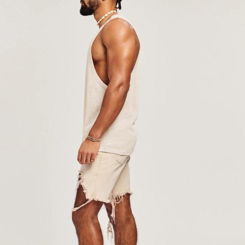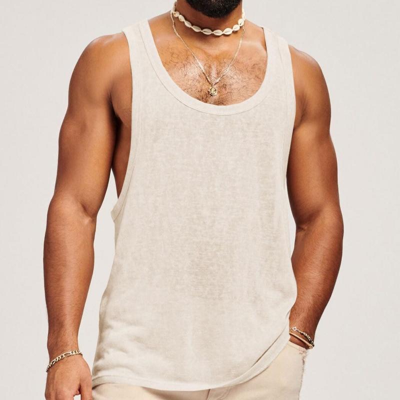 Design: Men's gym tank tops design with round neck, cut-off drop armhole, loose fit and solid color. Show your muscle lines and figure perfectly, and also ensure movement easily.versions. This transition is temporary and only affects orders during the changeover period. Rest assured, both fabrics meet our high standards, and the design and fit remain unchanged. We appreciate your understanding.
