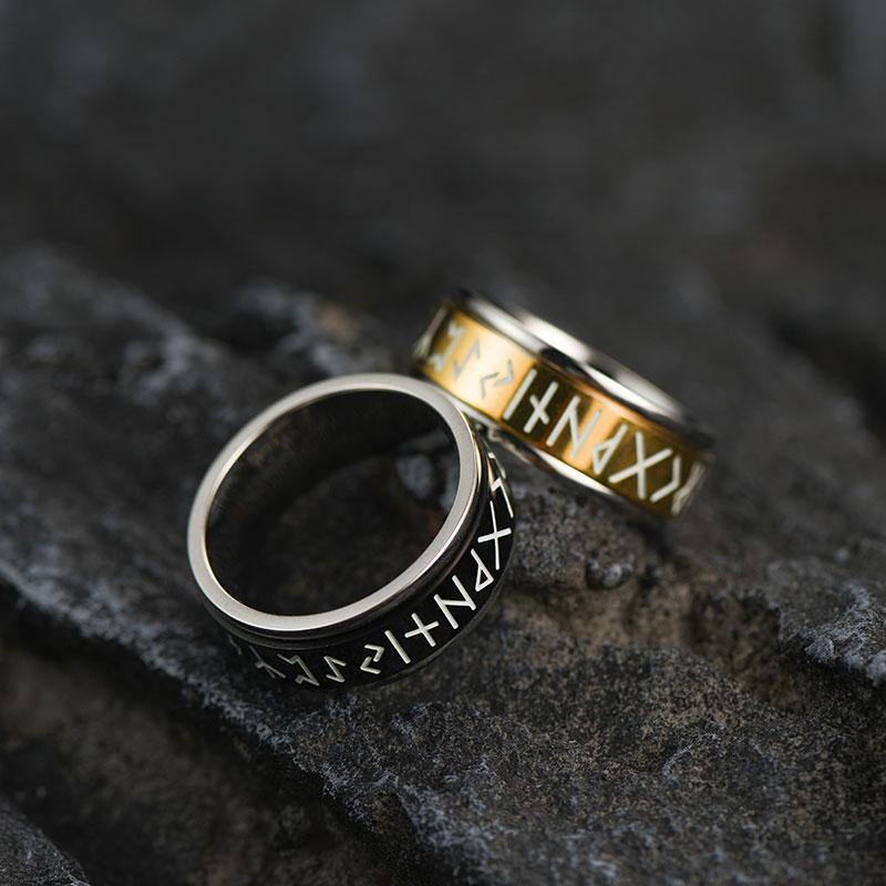 ·【Norse Runes Ring】 Rotating viking runes spinner ring, punk & hip hop style, perfect for men women to wear, especailly for viking lovers. Could be a thumb ring, pinky ring, middle finger ring etc.