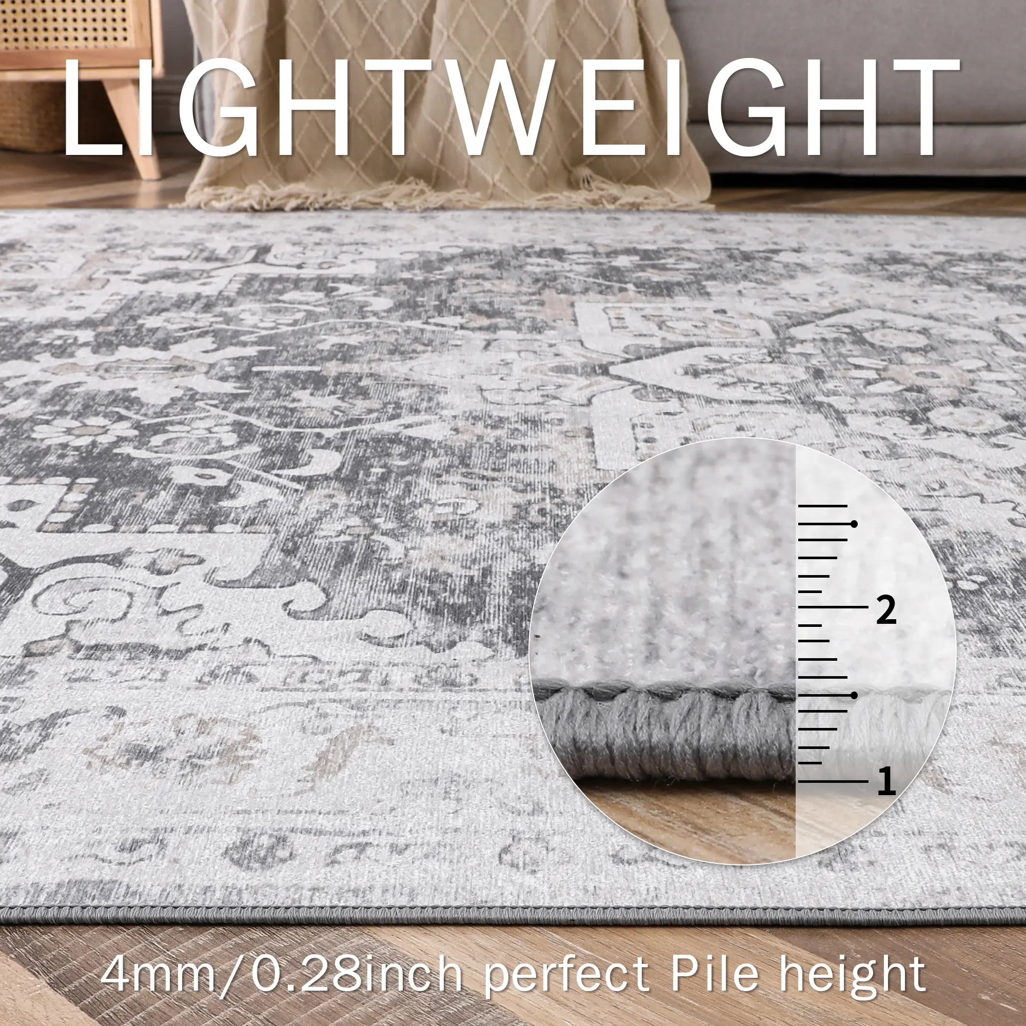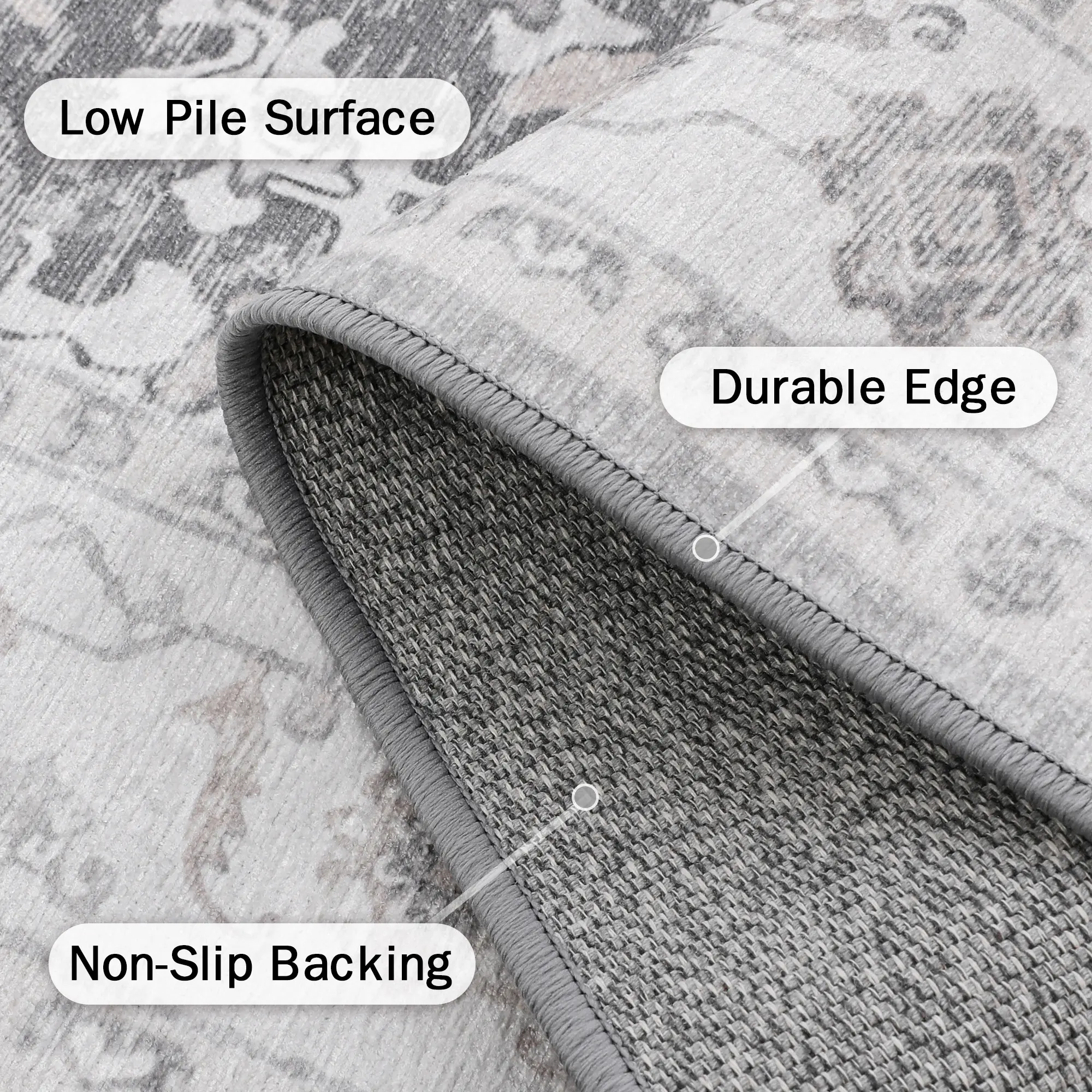 ·Durable & Low Maintenance:Made with long-lasting fibers and dense machine weaving, our low-pile rug withstands heavy foot traffic. It’s non-shedding, soundproof, and stain-hiding.