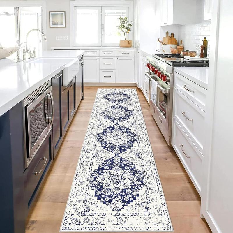 This medallion runner rug features trendy floral patterns. It's perfect for hallways, kitchens, bathrooms, laundry rooms, and bedrooms. Add chic and comfort to your home with this functional throw rug. Transform your living space into a welcoming and stylish environment.