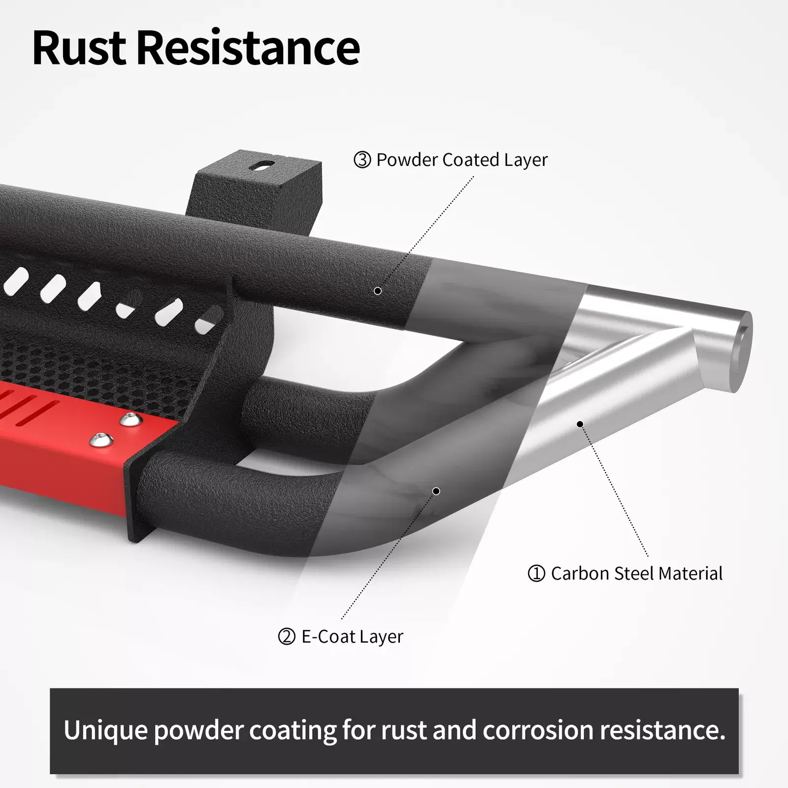 Strong and Durable: Made with high-strength tubular steel and a triangle structure, the YITAMOTOR Step Rails are tested to withstand up to 550lbs, while the textured powder-coating provides exceptional rust and corrosion resistance.