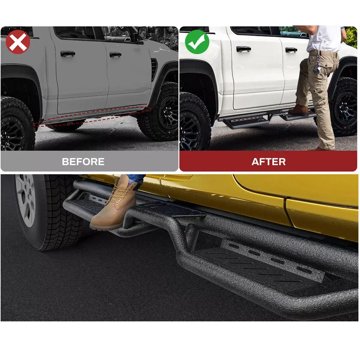 Heavy-Duty Carbon Steel: YITAMOTOR running boards are made from high-quality carbon steel to offer sturdiness, durability, and the ability to support up to 550 LBS without deformation