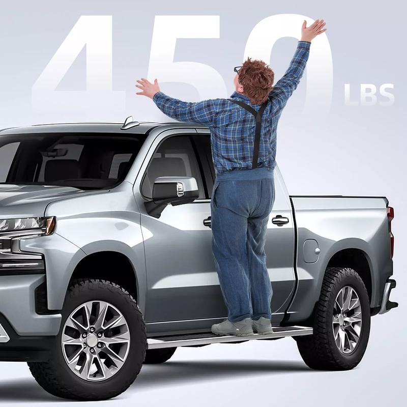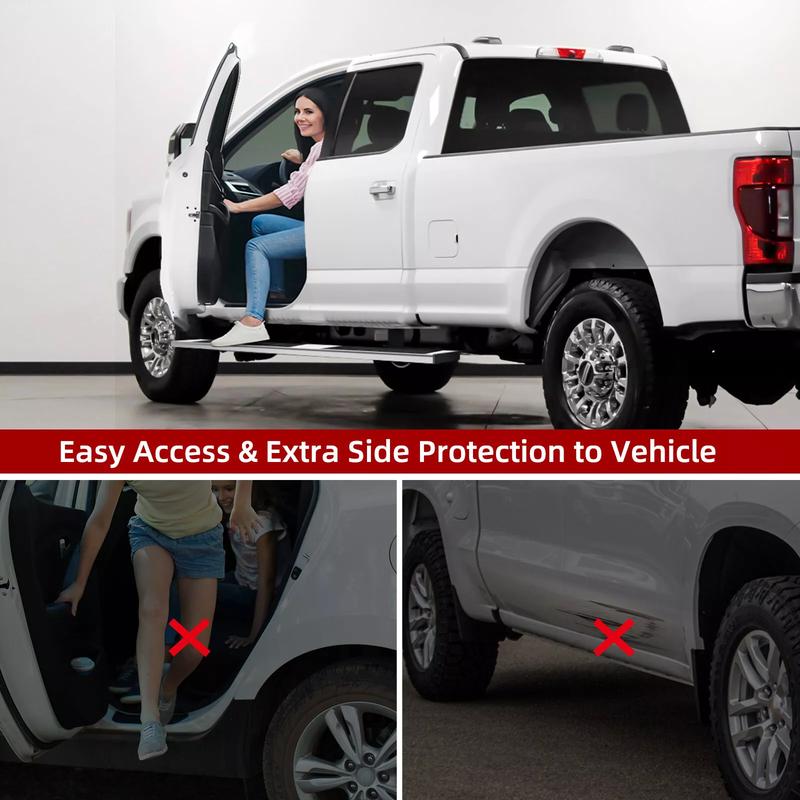 SUPER QUALITY - The running boards' structure provides strength and durability. The 6.5-inch non-slip injection step pad allows easy movement such as stepping in, stepping out, and even jumping (450 lb. capacity).