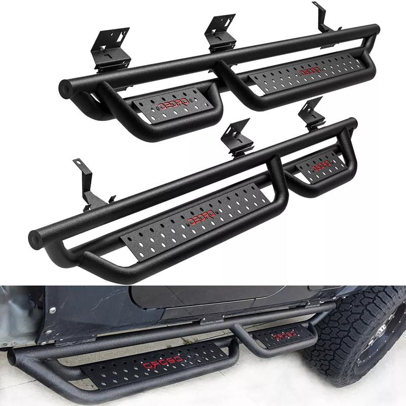 Strong and Durable: Unique powder coating offers exceptional rust and corrosion resistance so you can drive under any condition. The laser cutting step plate achieves a non-slipping step surface and reinforced grip. These step bars proven to handle up to 550 lbs. without bending.