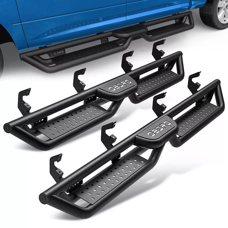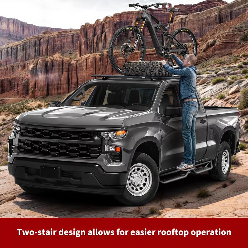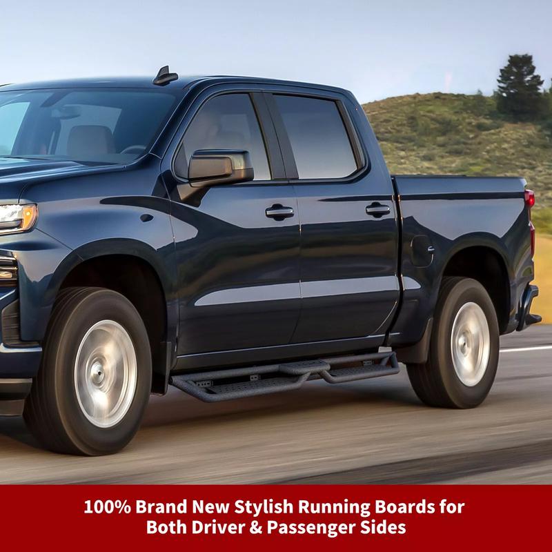 Enhance your driving experience with our versatile Running Boards, designed to fit a wide range of Chevy Silverado and GMC Sierra models from 2019 to 2025. These boards feature two-stair side steps and a rail drop design, making them perfect for navigating various driving conditions.