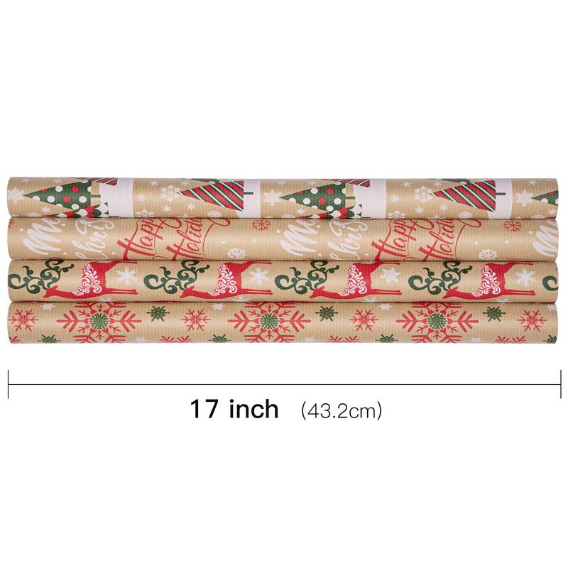 ·SIZE: Each roll is 17 Inches x 10 Feet, total of 4 rolls, can wrap many gifts and meet Christmas needs