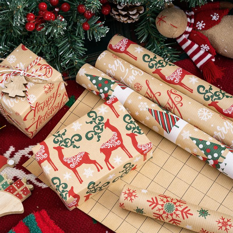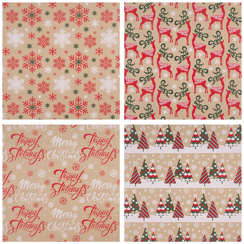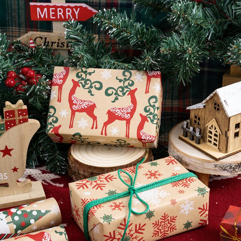 ·CHRISTMAS DESIGN: Includes 4 kraft designs, red and green snowflake, reindeer, Christmas tree and greetings design, add the holiday touch to any gift