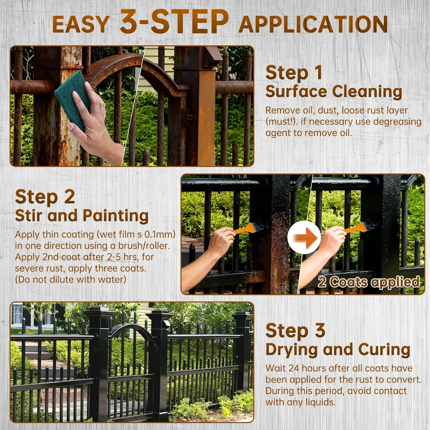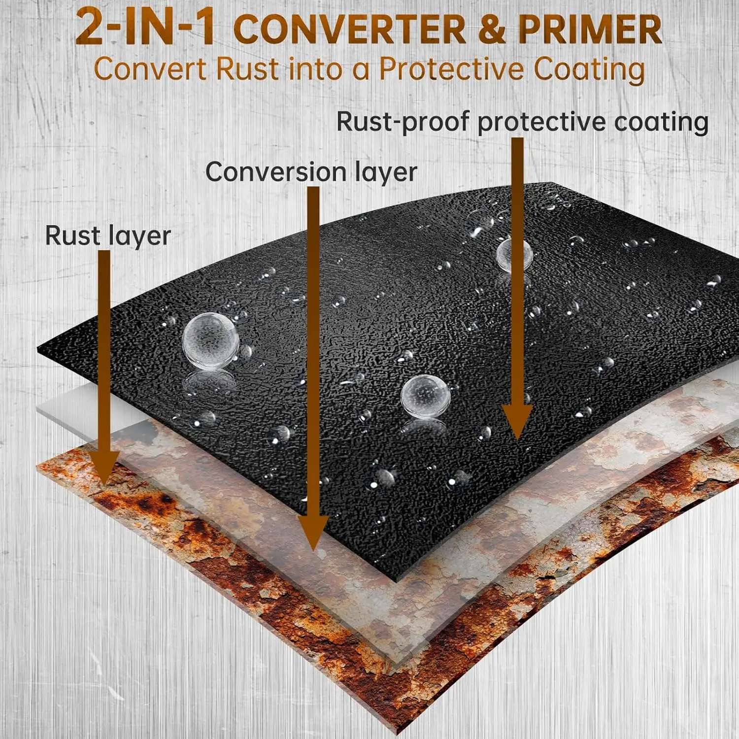 Our 2-in-1 formula chemically converts rust into a protective layer. It seals out water, salt, and chemicals for permanent protection, trusted by professionals.