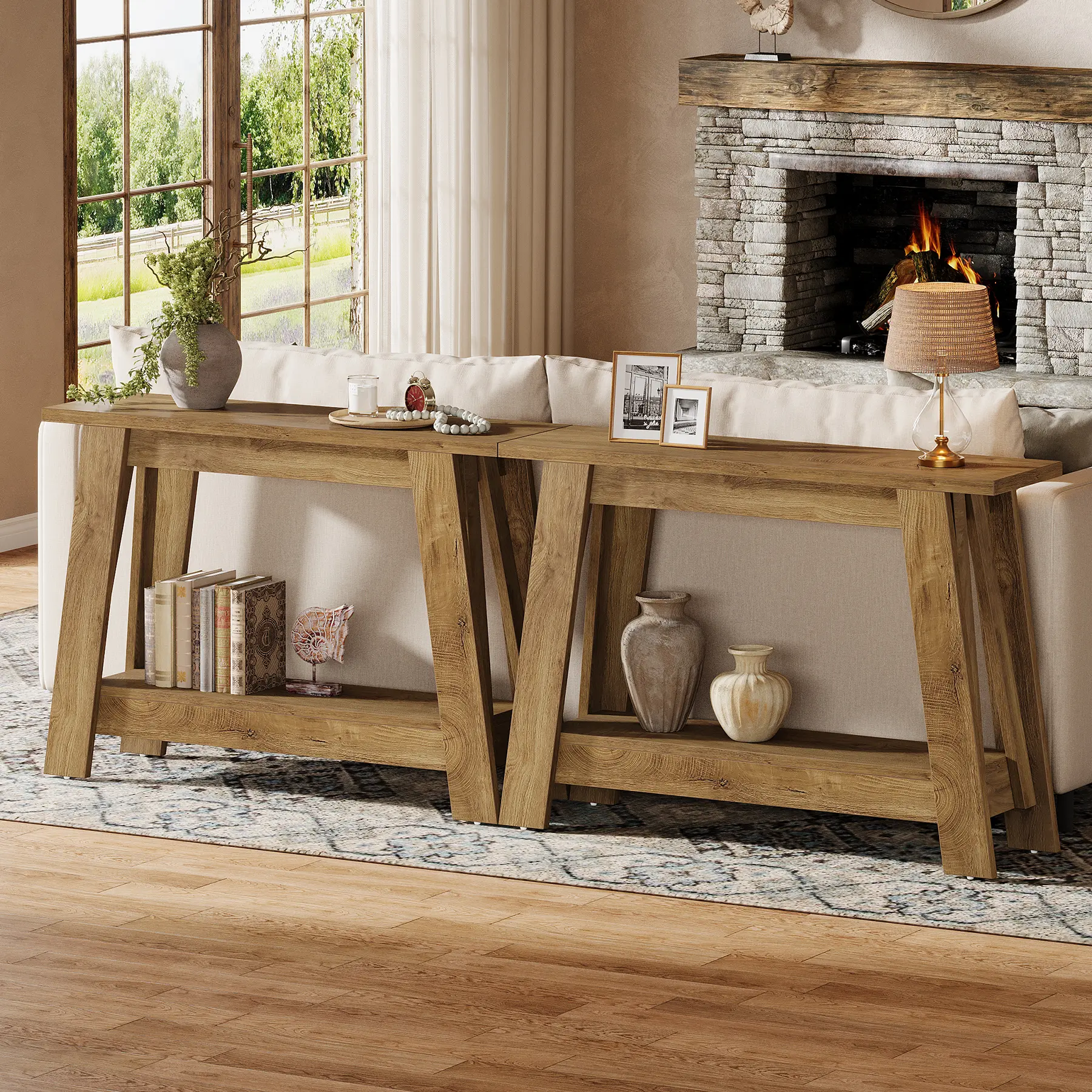 ·Spacious 2-Tier Storage: The sofa table includes sturdy open shelves, offering ample space for books, keys, or decorative pieces. Its well-organized structure enhances accessibility, keeping essentials within reach while maintaining a clean look