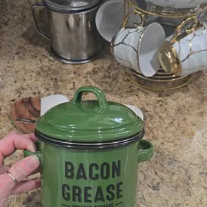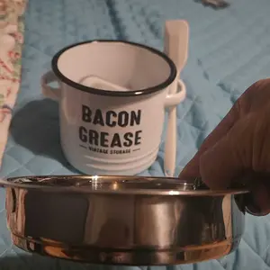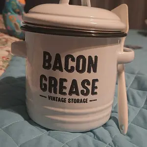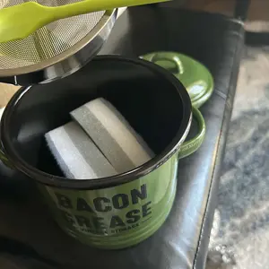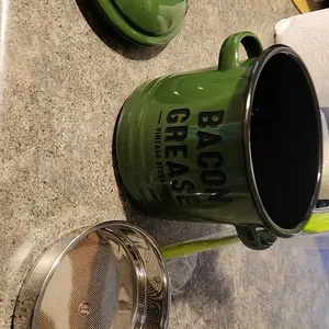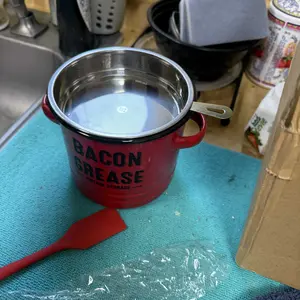 Easy, mess free storage for bacon grease! Keeps grease clean and free of particles and allows for safe storage till needed!