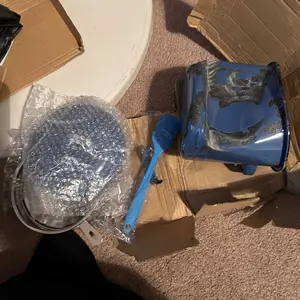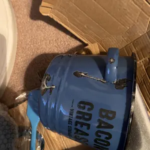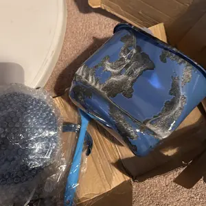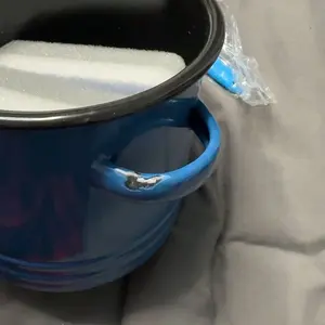 This blue container came to me bent like someone ran over it and one handle was broken off. All was bent except the top by some miracle. It was a gift & I really want to get another one but I may have to go somewhere else to get it.