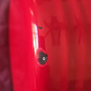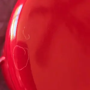 The product arrived open, and when I removed it from the box there were red paint chips everywhere. The bottom back side is missing a lot of paint. It will still work, but the back is ruined, which is disappointing.
