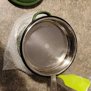 Full of paint chips and rough spots. Not to mention the metal is oblong shaped and strainer won’t even go inside the container. Wouldn’t recommend.