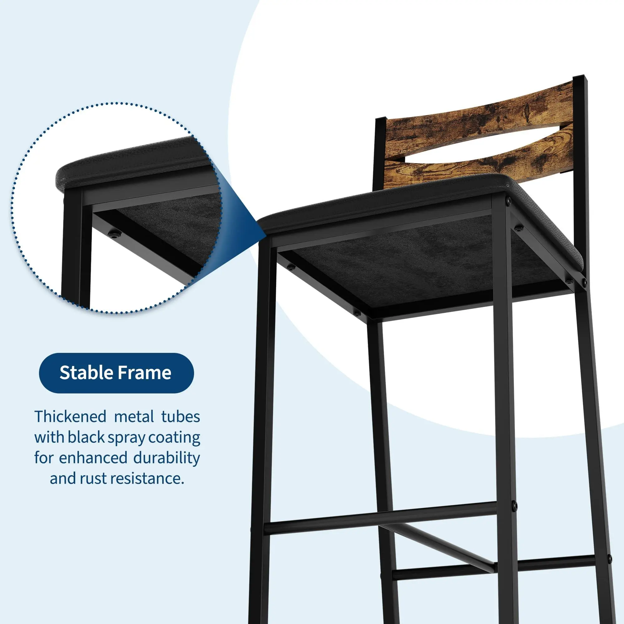 Ergonomic Comfort & Heavy-Duty Build: The bar stools are upholstered with thick padding for lasting comfort. Constructed from premium MDF and a robust solid steel frame, the set ensures exceptional stability. Each stool supports up to 300 lbs
