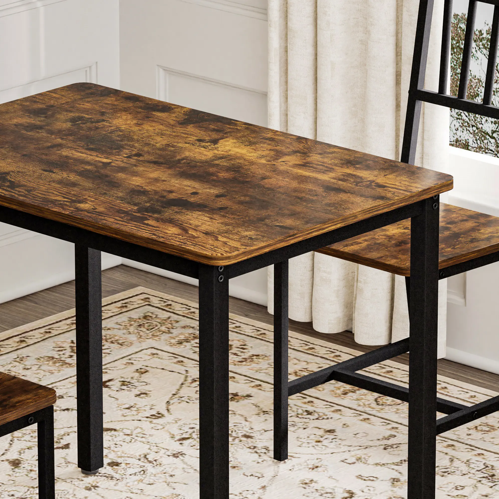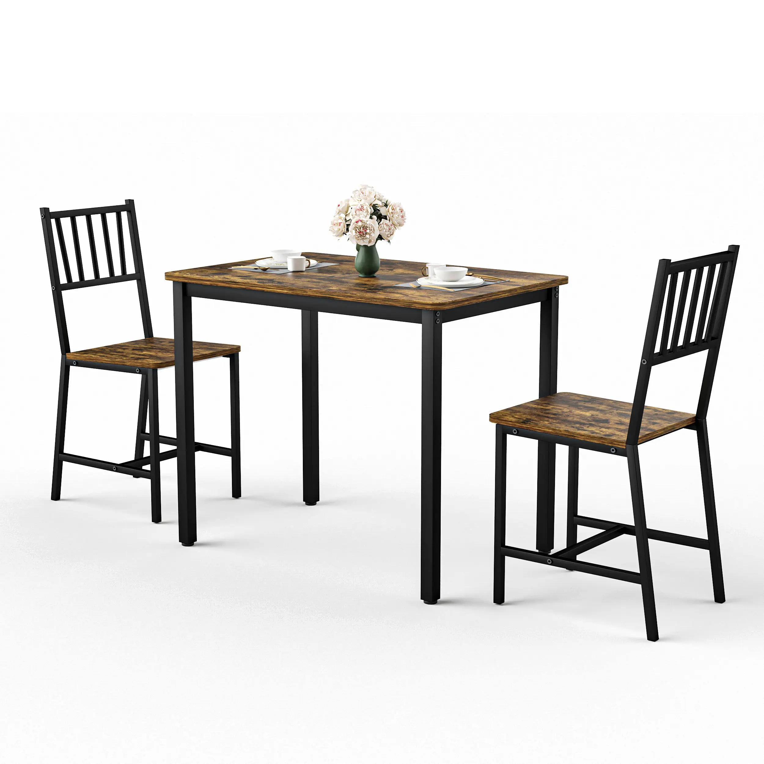 ·[Solid and Durable] The steel frames boast high stability, and the particleboard surfaces are durable and easy to clean-this dining table set is made to serve everyday meals.