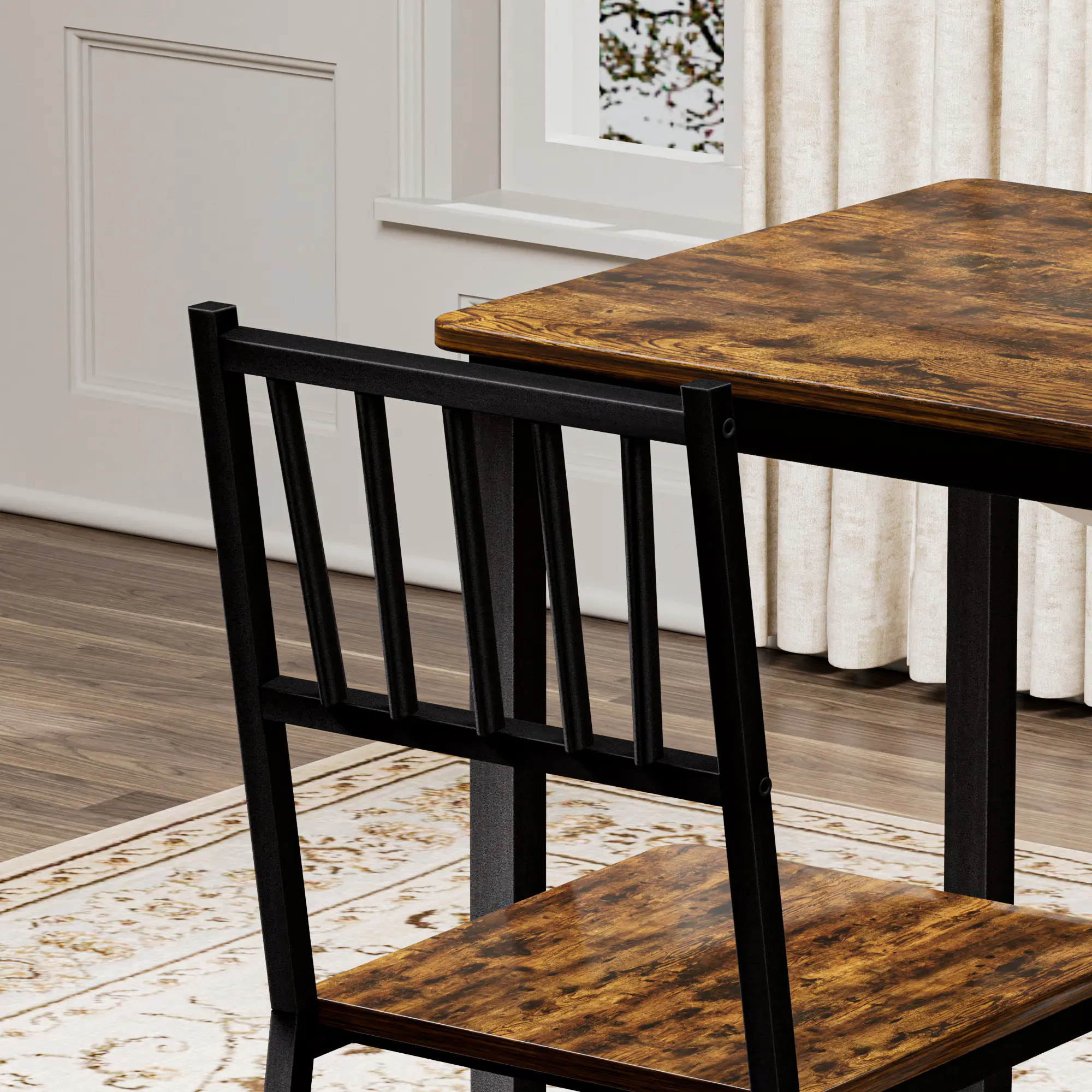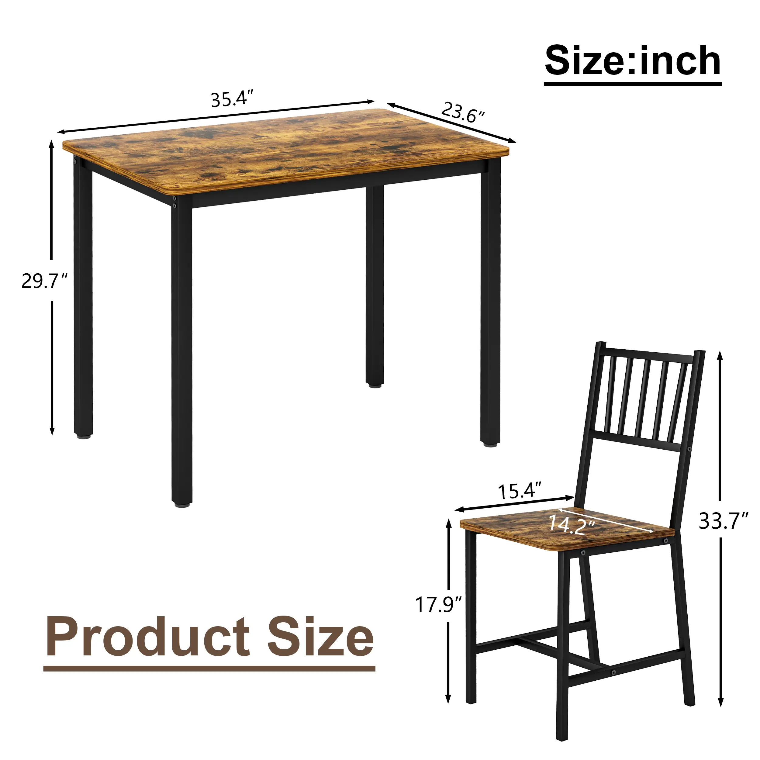 ·[Chic Industrial Design] Walnut paired with an industrial flavor. This dining set adds a touch of modern living to your dining room, kitchen, or living room.