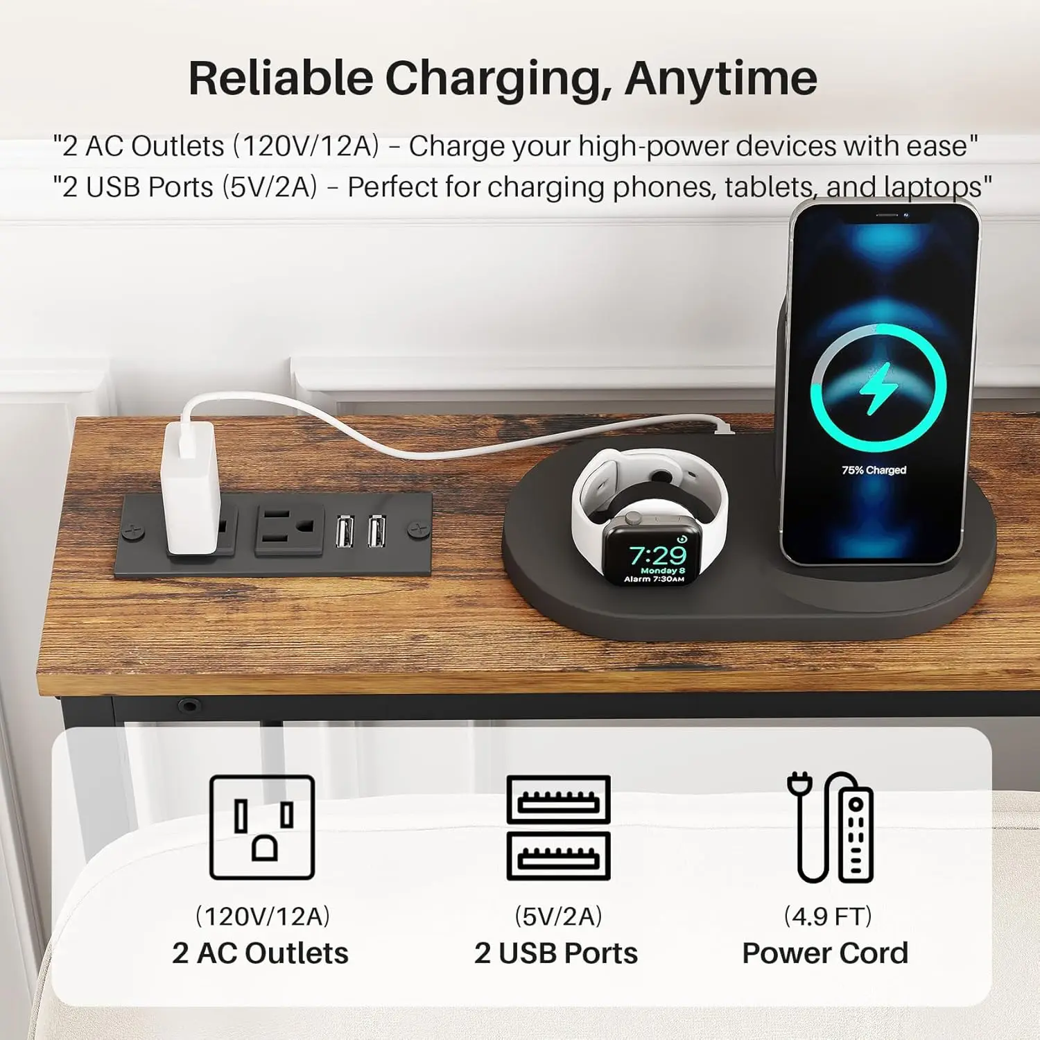 ✔️Durable and Power Outlets: Equipped with 2 outlets (120V/12A) and 2 USB ports (5V/2A) to meet various needs for phones, laptops, tablets, and more. Includes a 4.9ft extended, heavy-duty power cord for added convenience