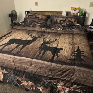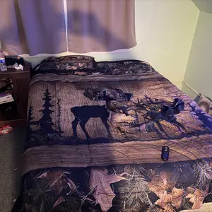 5. Rustic Cabin Bedding Sets,7 Piece Camo Hunting Deer Comforter Set,Farmhouse Animal Bed in A Bag for Teen Men,Tree Camouflage Wildlife Sheet Set
