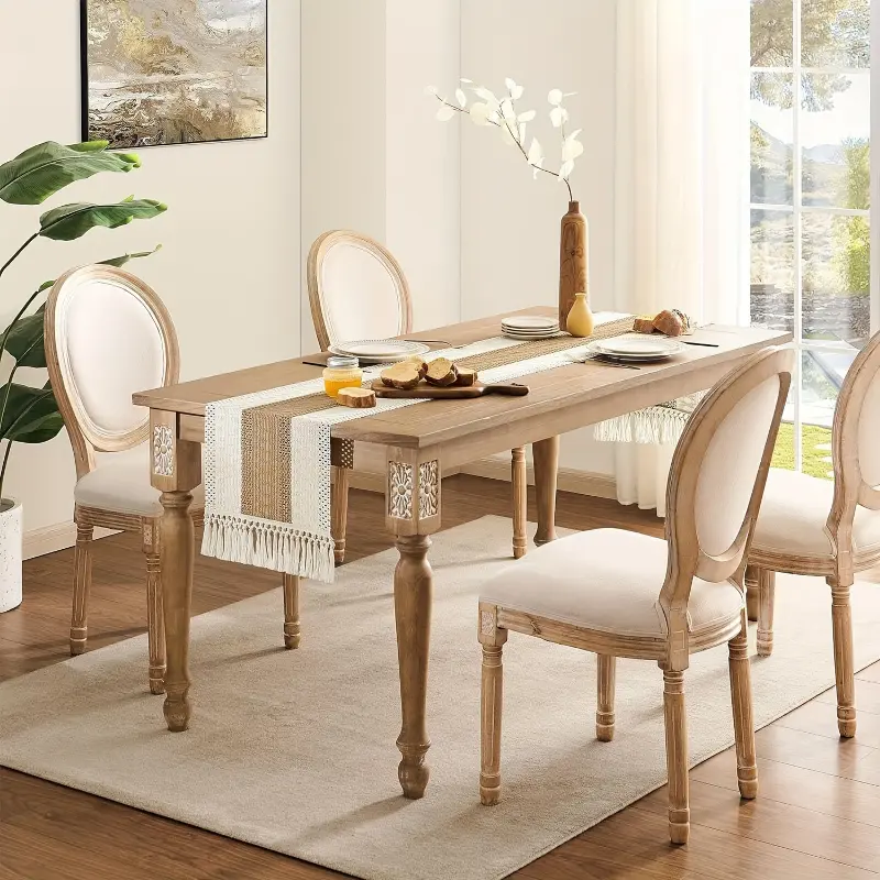 Rustic Farmhouse Boho Table Runner Macrame Crochet Polyester Tassel Striped Design Cream Brown Beige Decorative Dining Room Bedroom Living Room Home Decor