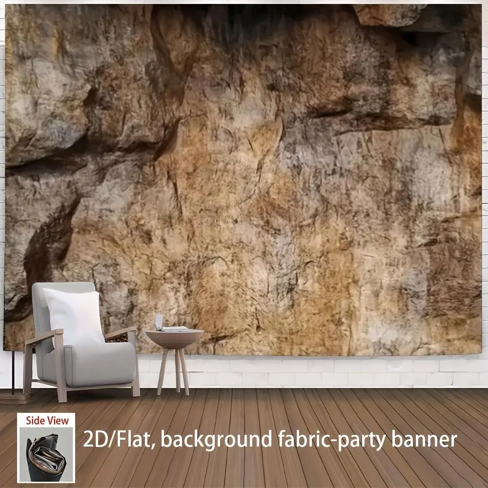 1pc 2D Flat Rustic Rock Wall Decor Backdrop - Natural Stone Texture Party Banner, Durable Polyester Fabric for Weddings, Birthdays, Bars & Home Decor, No Electricity Needed, Easy Setup, Festival Background, Tex