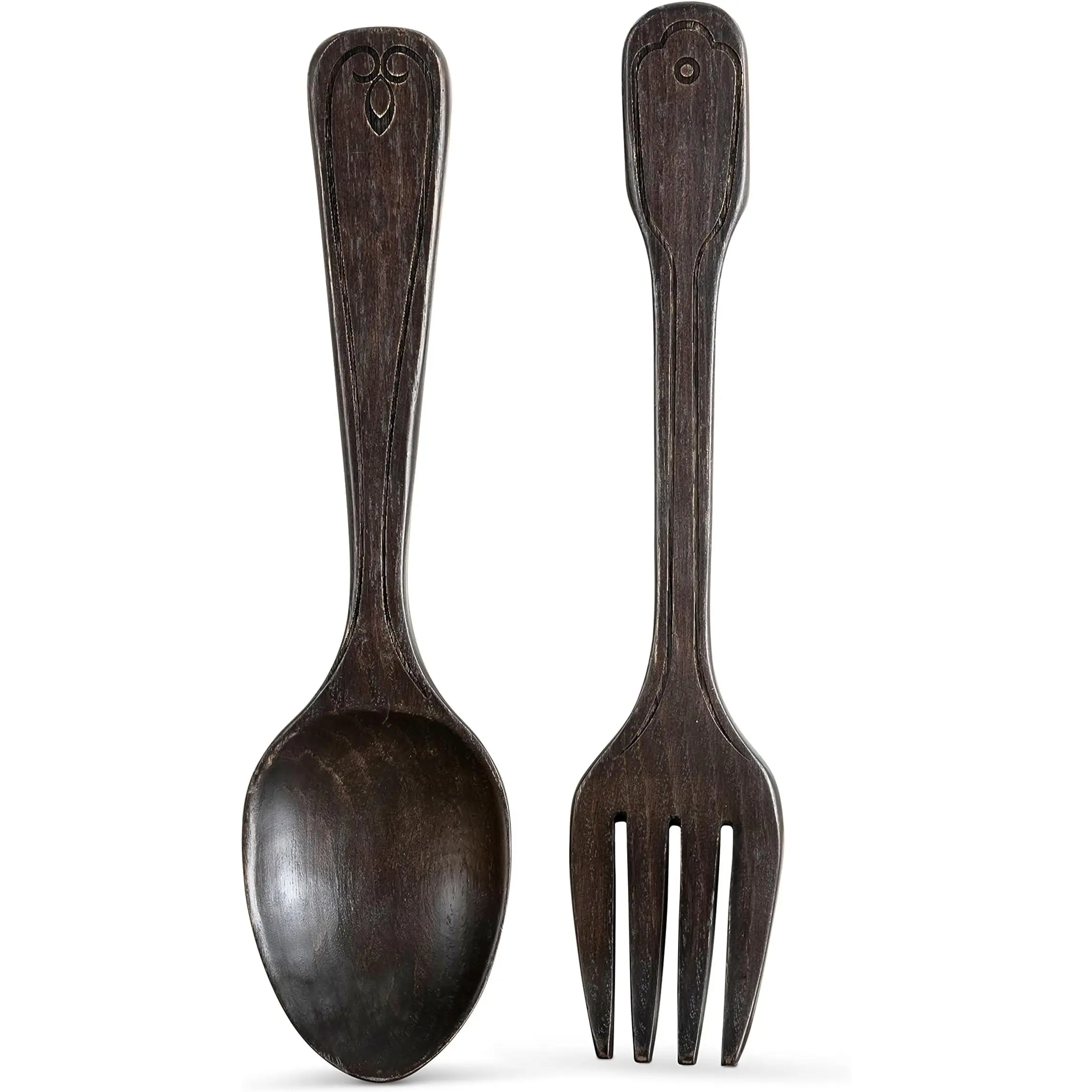 16" Wooden Fork and Spoon Wall Decor Set of 2 | Large Spoon and Fork Wall Decor | Modern Farmhouse Kitchen Decor | Rustic Kitchen Wall Decoration