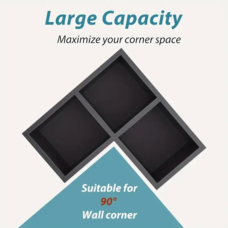 PHANCIR 5 PCS Corner Shower Caddy, No Drilling Stainless Steel Shower Storage Rack with Hooks & Toothpaste Holder for Bathroom, Black