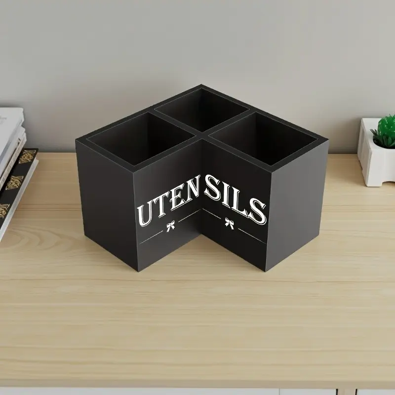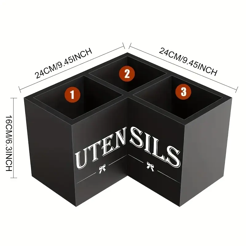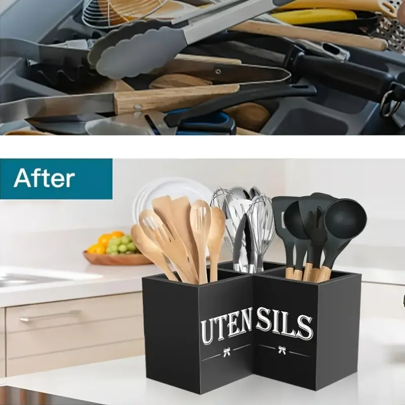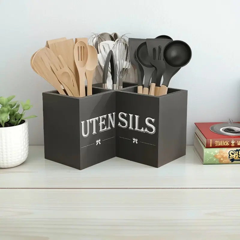 3 Compartments Rustic Style Kitchen Corner Tableware Open Storage Box, Wooden Countertop Storage Box with Space-Saving Design, Suitable for Forks/Spoons/Sifters