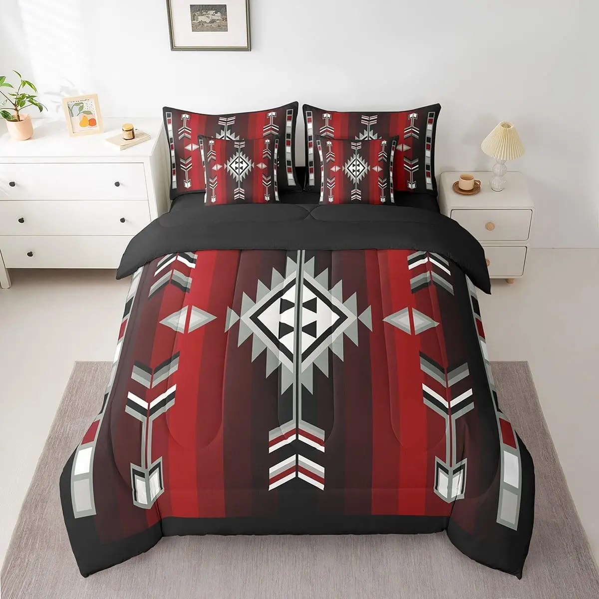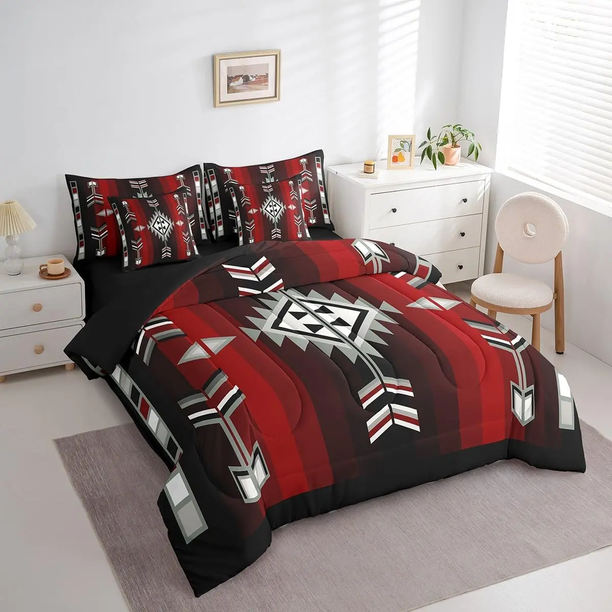 Rustic Western Bedding Set,7 Piece Boho Aztec Bed in A Bag,Southwestern Country Native Comforter Set for Adults