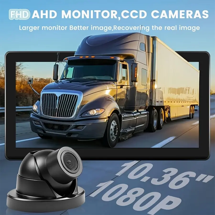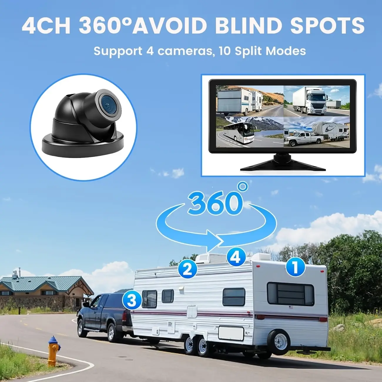 ·【10.1inch 4K Touchscreen & 1080P Camera】 backup camera system boasts a 10.1-inch 4K IPS touchscreen monitor, simultaneously displaying the UI and 4-channel footage. Responsive, color-accurate with a wide viewing angle, it delivers no color cast or distortion from any perspective. It supports 1/2/3/4-channel display selection and free screen rotation for post-installation adjustments.