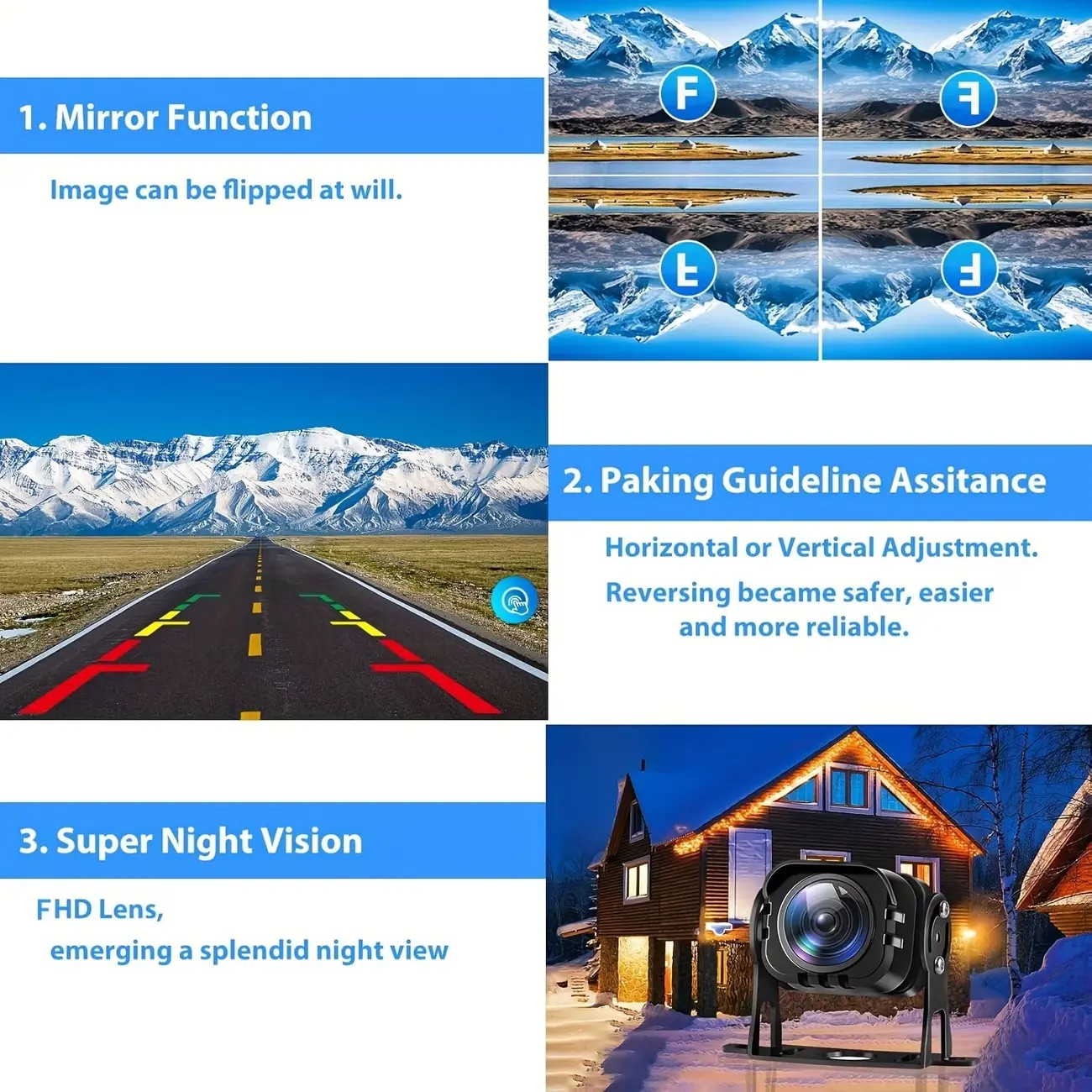 ·【DVR Recording & No Signal Delay】 backup camera system features built-in DVR recording with local playback and loop recording. 4 cameras record simultaneously with zero signal delay, eliminating blind spots for safer driving—ideal for parking and security monitoring.
