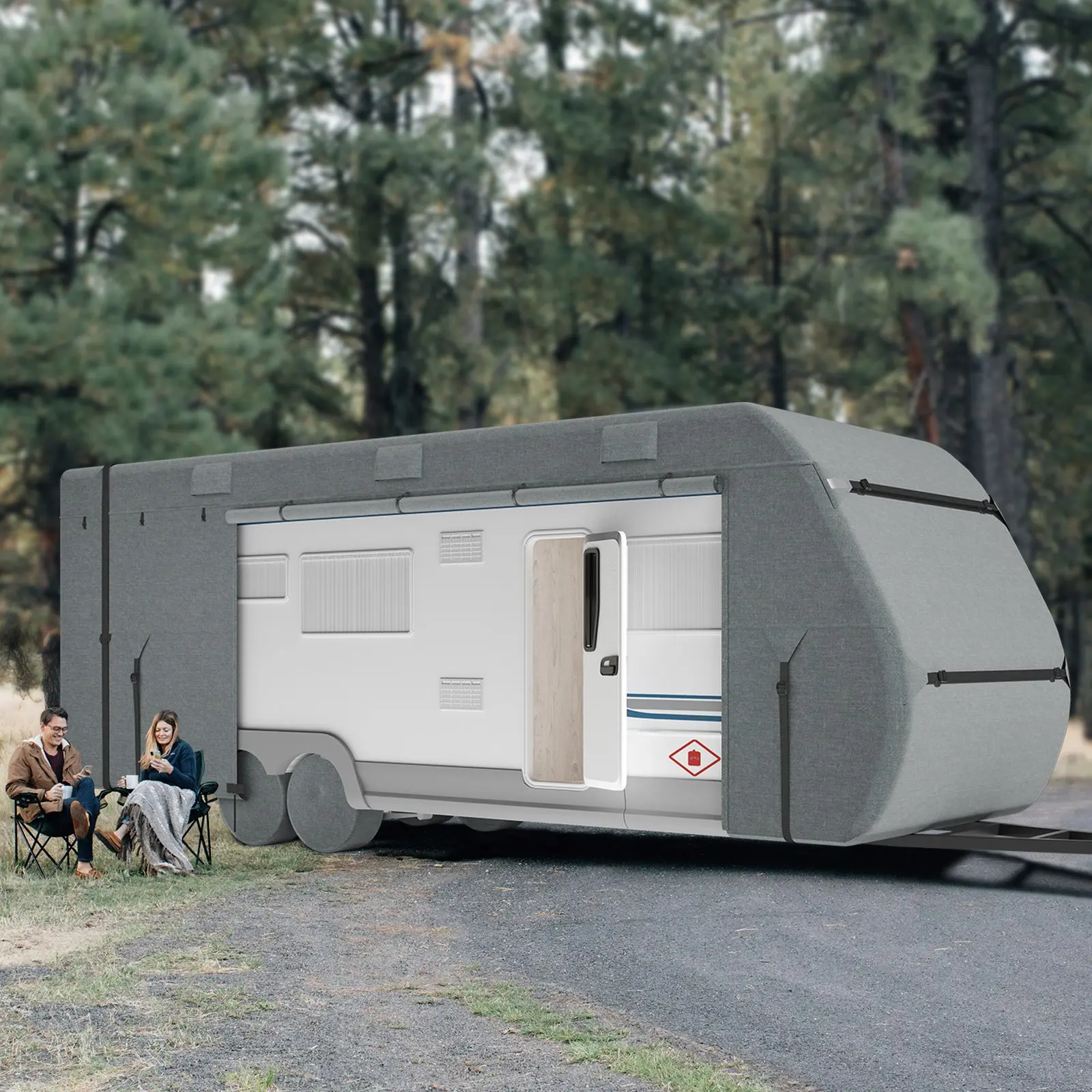 ·Convenient Access and Security: The zippered door allows you to open the windows and access the RV door easily, making it simple to load and unload without removing the entire cover. The widened Velcro at the bottom of the side zipper protects the zipper from damage, preventing seam splits in windy conditions. Reflective strips on the front and back enhance safety at night, during snow, or when parked, alerting nearby pedestrians and vehicles.