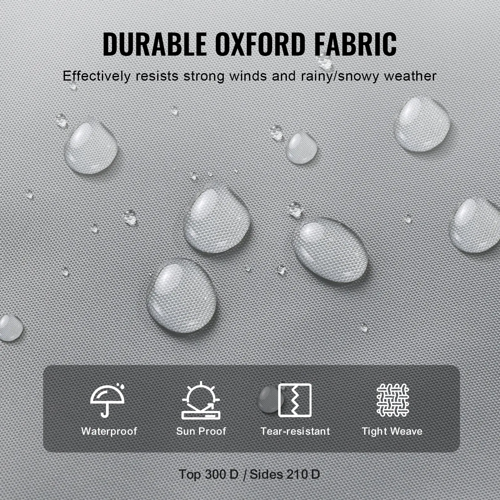 ·Waterproof and Tear-Resistant: The trailer RV cover is made of 300D Oxford fabric on the top and 210D on the sides, providing over twice the tear resistance of non-woven materials. It's sun-proof, aging-resistant, and has a waterproof rating of 1000mm, making it ideal for rainy and windy conditions. This ensures year-round protection for your RV. The double-stitched seams enhance durability and prevent cracking over time.