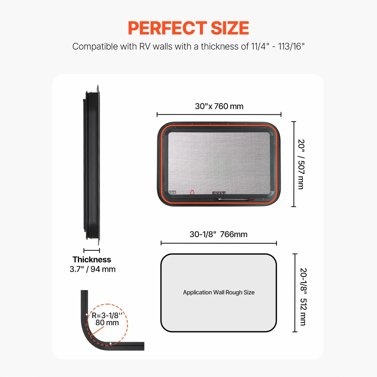 • Universal Exit Window: Our 30"W x 20"H RV exit window is the ideal replacement for old or damaged windows. Designed to fit 1 1/4" - 1 13/16" thickness walls, this RV window provides a reliable solution for RVs, trailers, campers, and cargo trailers