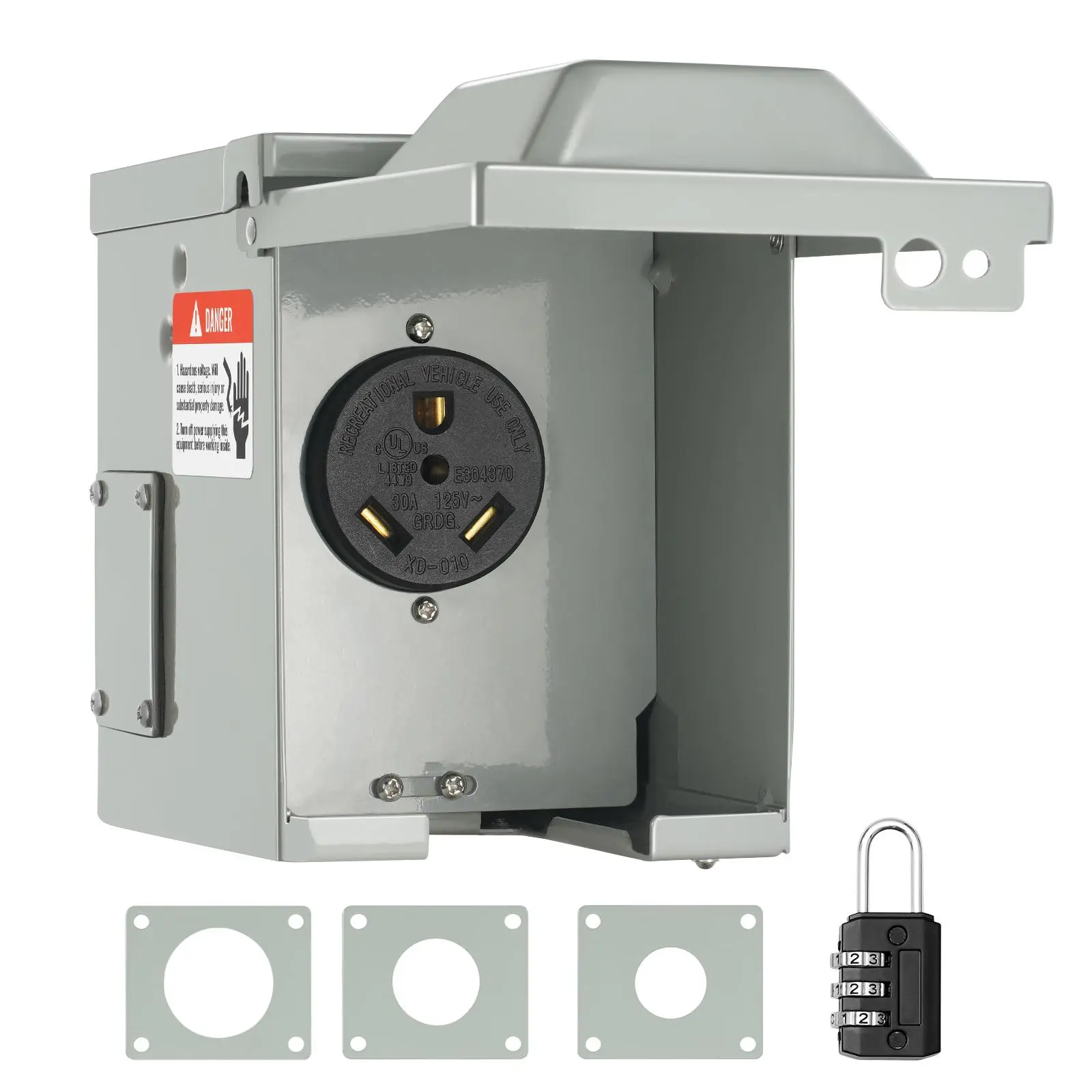 5. VEVOR 30 Amp RV Power Outlet Box, 125/250 Volt, Enclosed Lockable Outdoor RV Receptacle Box, NEMA TT-30R Weatherproof Electrical Panel, for RV Camper Trailer Motorhome Tested toStandards