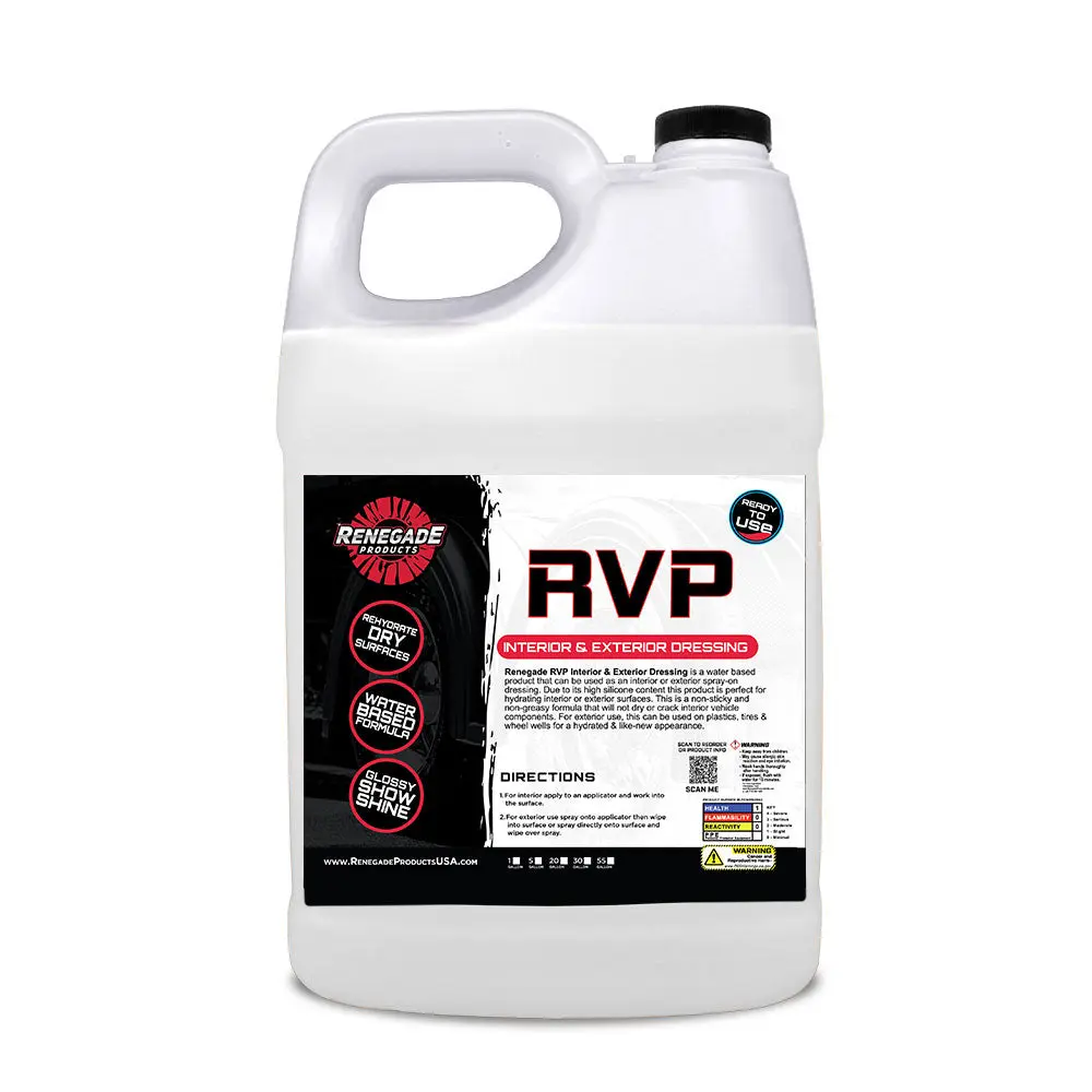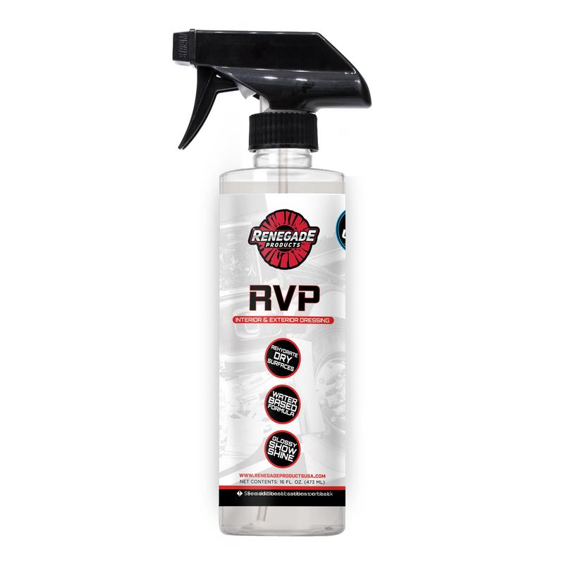 RVP Rubber, Vinyl, & Plastic Dressing is the perfect solution for restoring and protecting both interior and exterior rubber, vinyl, and plastic surfaces. It leaves your trim, door panels, center console, and engine bay components looking clean, conditioned, and free of greasy residue—while helping to prevent fading, drying, and cracking.