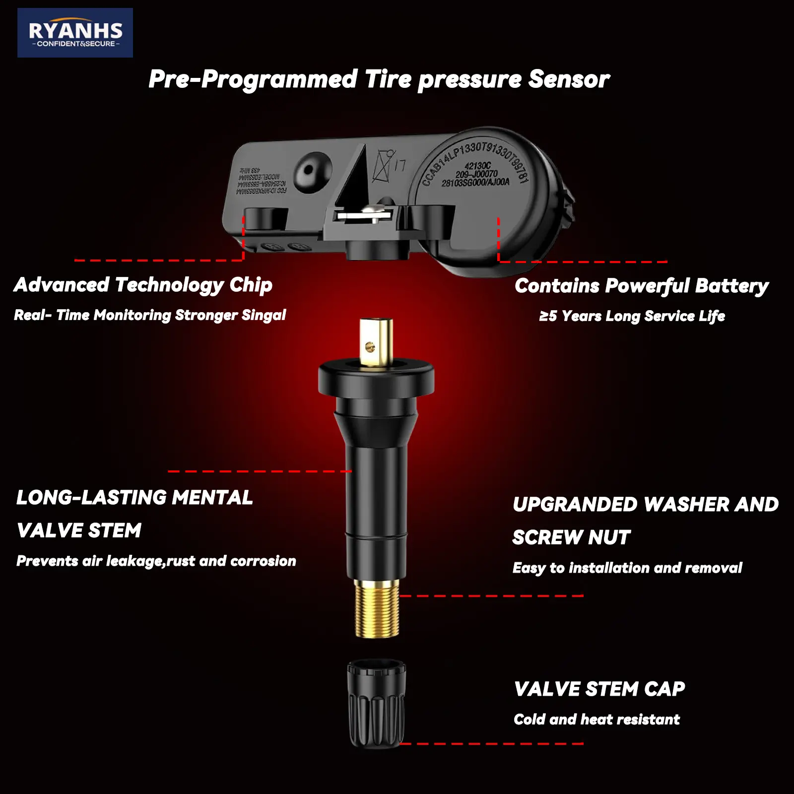 Fully FCC and IC certified. Equipped with a high-precision NXP chip. Tested according to SAE J2657 standards. Long-lasting CR2050 battery. Upgraded aluminum valve. Ultra-long lifespan. Stable and reliable performance. 2-year guarantee.