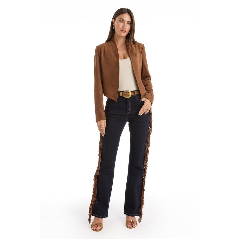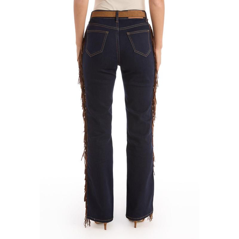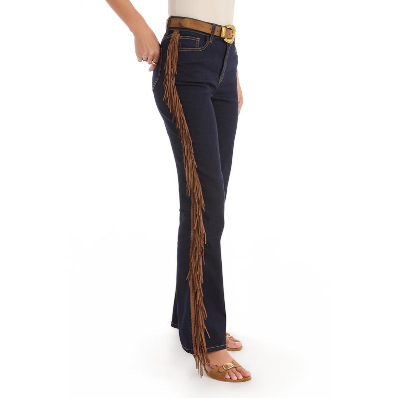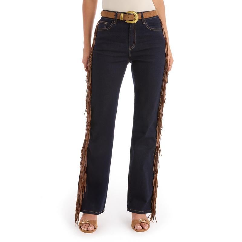 Texture meets trend for the ultimate Western look. Meet the Ryder Fringe Jean, our dark wash bootcut jean with side seam fringing. Designed with a high-rise silhouette and our four-way stretch denim, this pant is as comfortable as it is stylish. Pair it with our Yasmin Suede Jacket for the ultimate it-girl look.