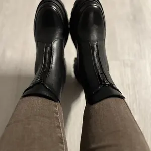 Really digging these boots! If you want to feel taller & badass, you should get them too. I’m usually a 7 but have a pretty wide foot so did the 7.5 and they’re great! Some breaking in time but not much. I like that the zipper is a more muted silver tone, looks so good w the black leather. Wearing them multiple times a week