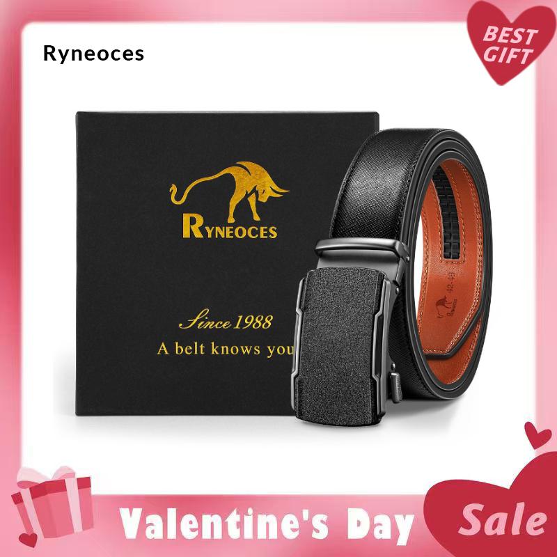RYNEOCES Men's Leather Ratchet Belt – Automatic Adjustable Buckle, Casual & Dress Belt, Perfect Gift Valentine's Day Gift