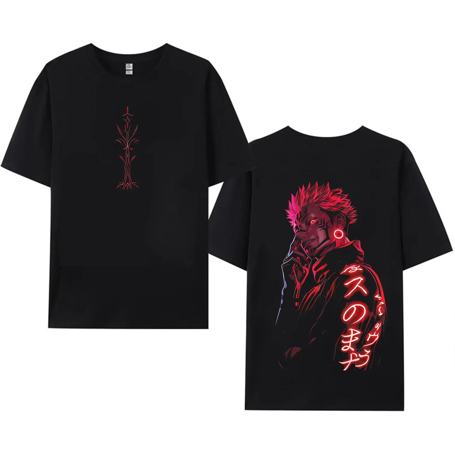 Doesn’t match the photos. The front design is much larger and the back much smaller than shown, and the back design looks different than pictured. The shirt itself is nice, but the design seems like it may deteriorate quickly with washing and drying.