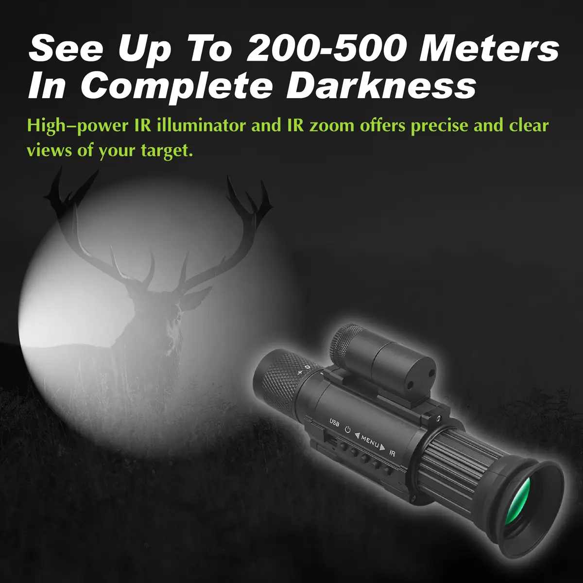 ·【Advanced Night Vision Technology】: The monocular night vision telescope uses 850nm infrared illumination, 1080P AMOLED high-resolution display, which provides ultra-clear imaging, detecting objects up to 500 meters at night. This scope allows you to see clearly in total darkness, enabling you to easily and confidently spot and track game or threats. It can also be used in daytime so that you can enable full color.