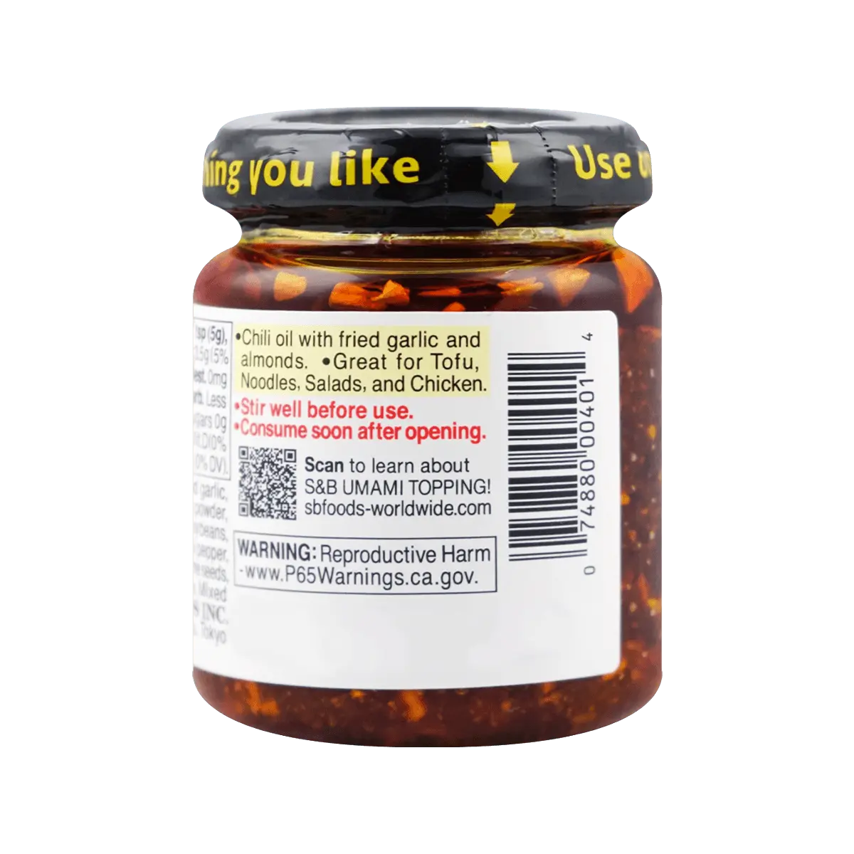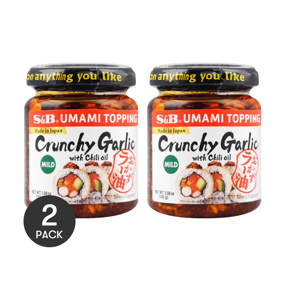 Discover the rich flavors of S&B Japanese Garlic Almond Chili Oil! Perfect for adding a spicy kick to your rice, noodles, and more. This 2-pack of 110g each offers a harmonious blend of sweet, salty, and spicy tastes. The perfect blend of fried garlic, almonds, and chili sauce creates a delightful experience. Ideal for dipping, marinade, or stir-fry enhancer.