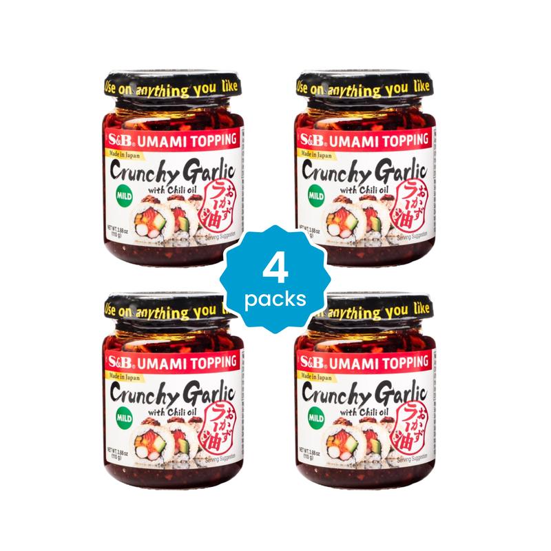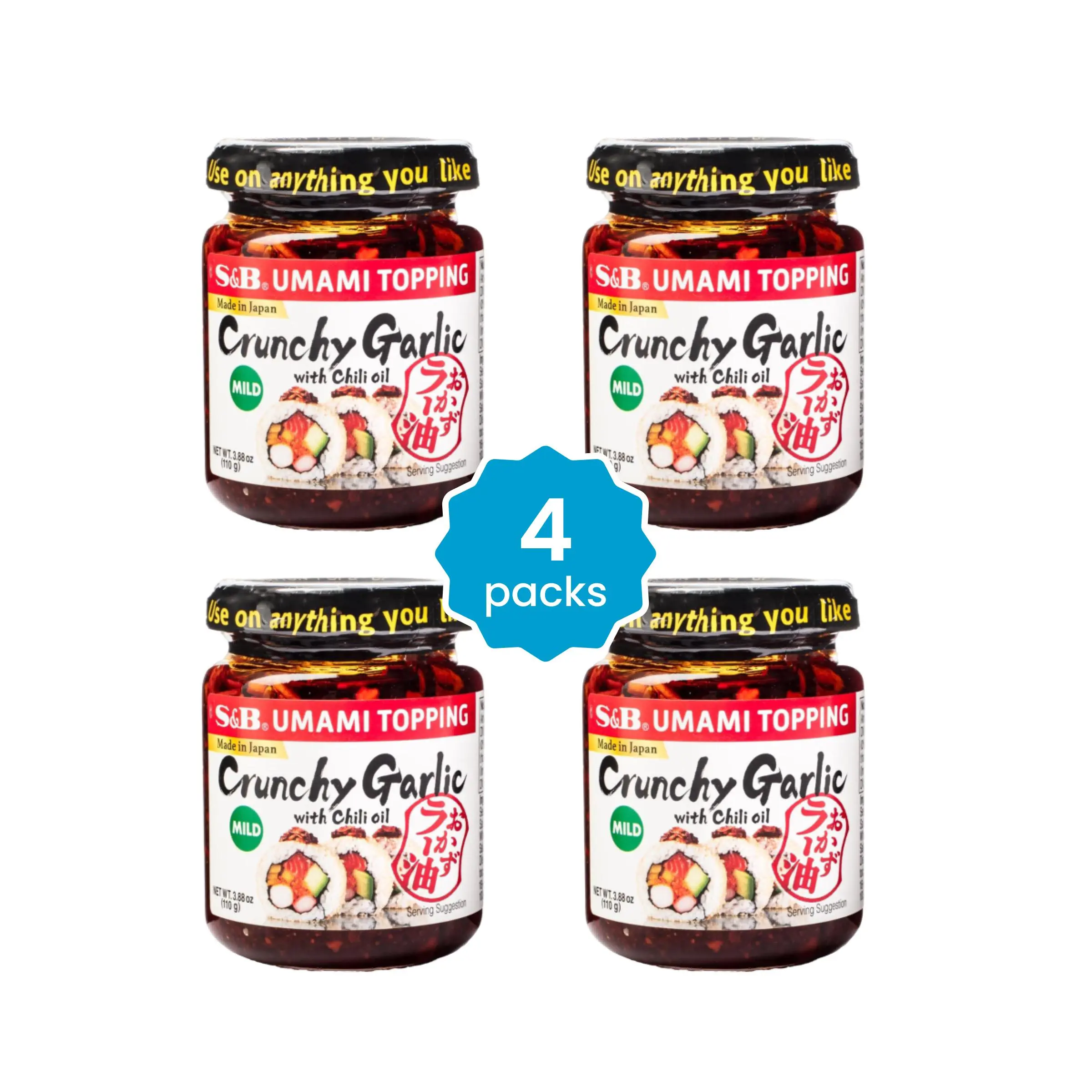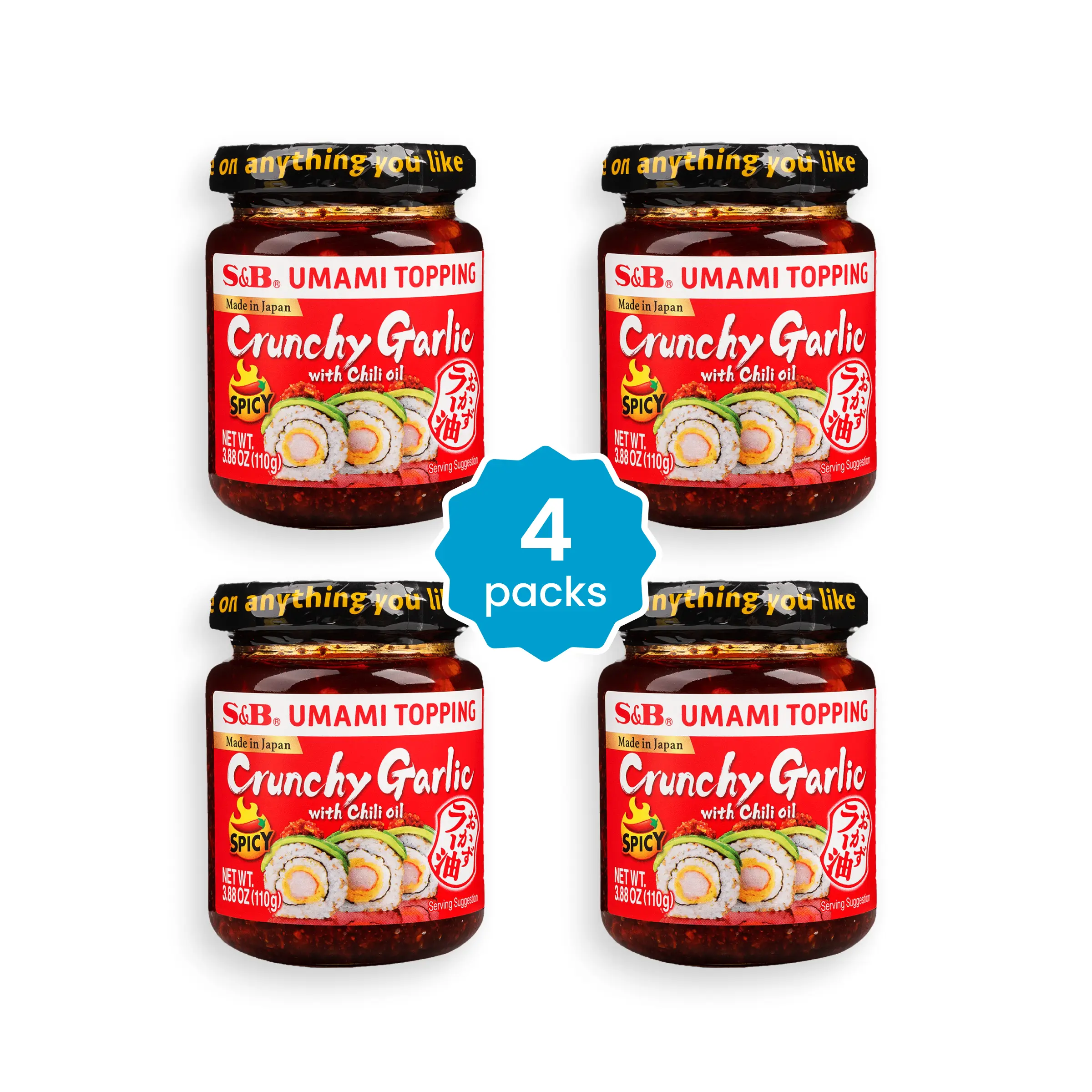 S&B Umami Topping Crunchy Garlic with Chili Oil Value Pack – Mild or Spicy (4 Packs, 3.88 oz x 4)