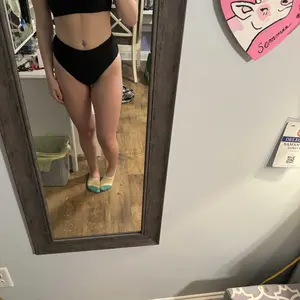 Love this swim suit! True to size, good quality, super flattering! The corset in the back really helps hold the girls in and lift them without being uncomfortable. All around just a great black two piece for any occasion. The bottoms aren't cheeky but arnt like wearing a diaper either. Awesome find!