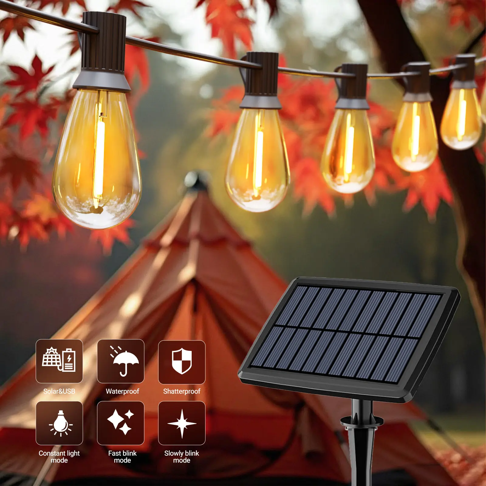 Daybetter S14 Solar outdoor string LED lights, patio lights shatterproof and dimmable vintage Edison bulbs, IP44 weatherproof, four lighting modes for terraces, camping, bars, corridors, parties(New & Old Styles Mixed Delivery).