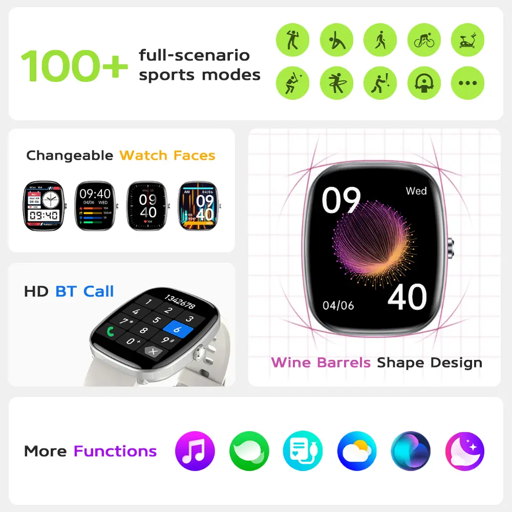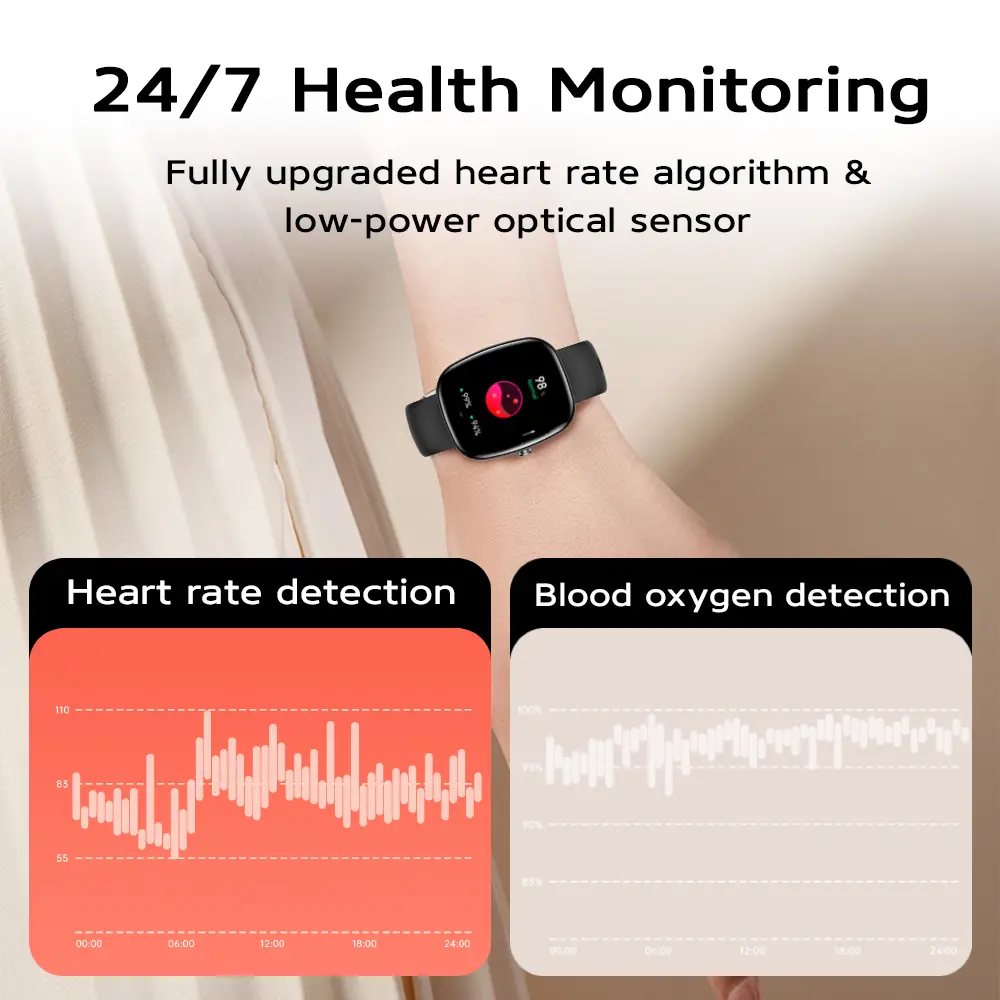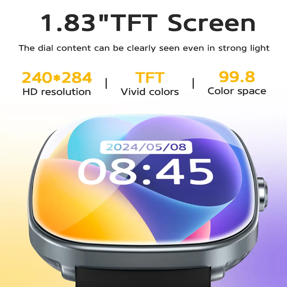Ever wish your smartwatch could keep up with your busy lifestyle while looking sleek? The Aolon-huafit S5 Smart Watch offers a stunning 1.83-inch HD touchscreen that makes every glance a treat. Whether you're taking calls with its clear Bluetooth speaker or switching between 100+ sports modes, this watch is your perfect workout and wellness buddy. Track your heart rate, blood oxygen, blood pressure, and sleep quality all day long to stay on top of your health goals. Plus, with customizable watch faces, you can show off your personality in style. The IP68 waterproof rating means it can handle sweat and rain, while the comfy silicone strap keeps it secure during all your adventures. Inside the box, you get the watch, a magnetic charger, and a user manual to get started. Ready to upgrade your wrist game? Grab the Aolon-huafit S5 and experience smart living made simple and stylish.