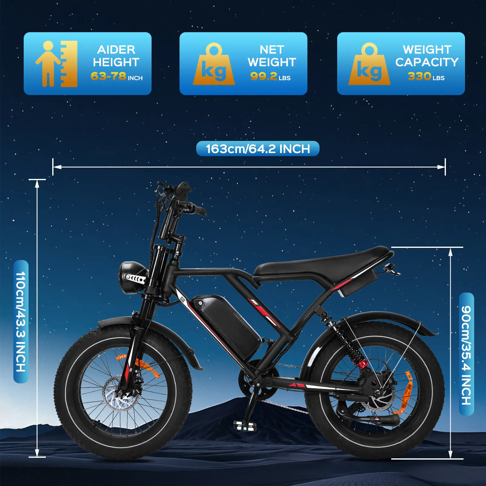 The S8 Electric Bike is perfect for adults seeking versatile transportation. It features a 20'' fat tire design, ideal for various terrains like mountains, snow, sand, and roads. The bike comes with a powerful motor and a 48V 17.5Ah removable battery, ensuring long-lasting power. It includes 7-speed gears for smooth transitions.